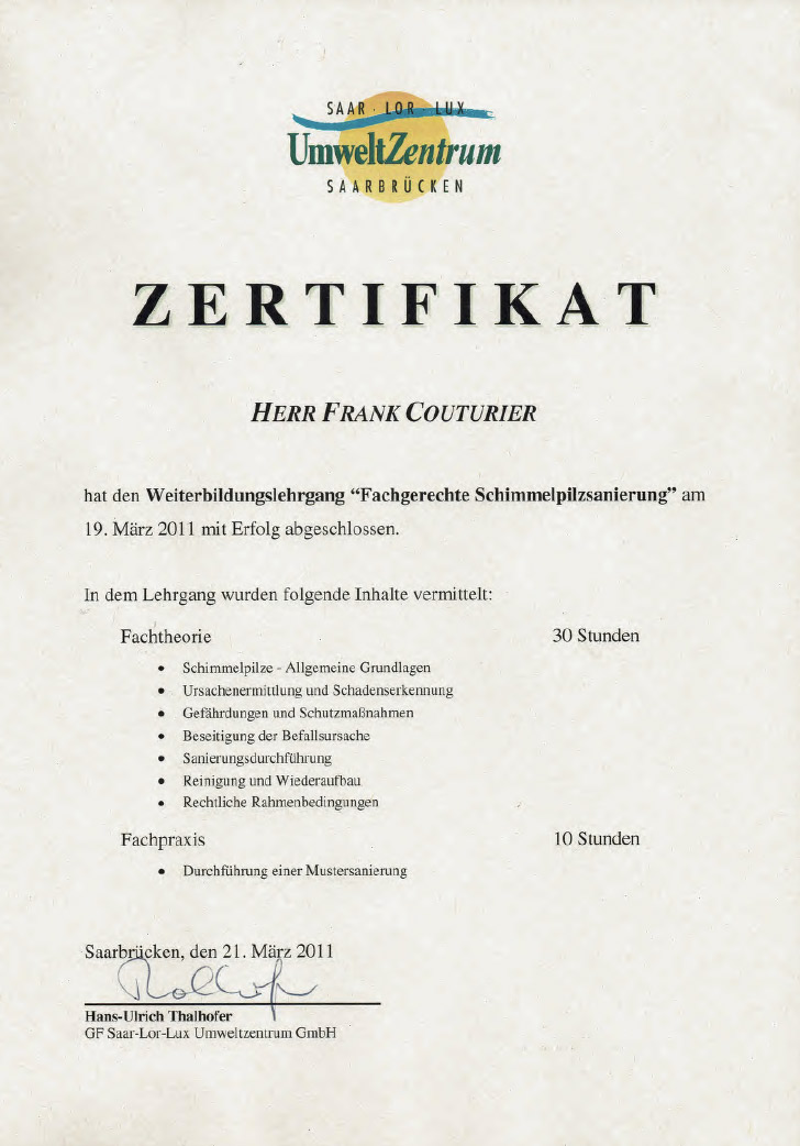 Wichtig ist dem Geschäftsinhaber Frank Couturier (Meister) auch selbst vor Ort auf Ihrer Baustelle präsent zu sein.